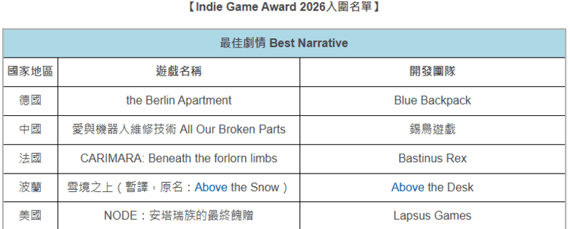 另外,《覆雪之上》的叙事深度已获业界关注,游戏成功入围2026年台北国际电玩展"最佳叙事"奖项提名。该展会是亚洲最具影响力的行业盛会之一,此提名充分肯定了作品在情感表达与故事叙述方面的卓越表现。