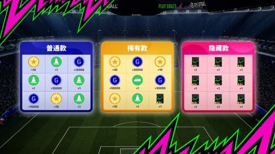宾果卡共有普通款、稀有款、隐藏款三种品质,奖励逐层升级!你还有可能获得含精选梅西或亚马尔,或着20抽【开服狂欢 高光 特级经纪人】的隐藏款宾果卡!