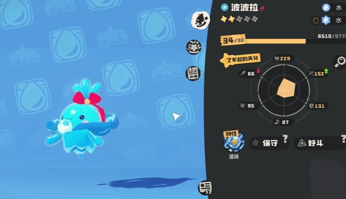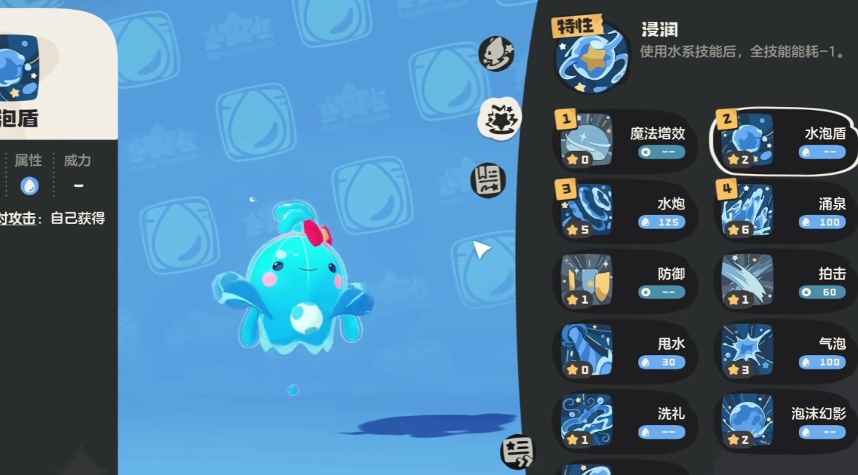 水蓝蓝是游戏里的初始宠物,它的核心技能水之波纹不仅拥有群体减速的效果,还附带治疗水滴的功能,能够为玩家回复生命值。在游戏前期,水蓝蓝既能帮助玩家维持战斗中的平衡状态,也具备一定的输出能力。