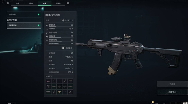 推荐方案:T0级别,满配改装后稳定性极强,有效射程可达72米