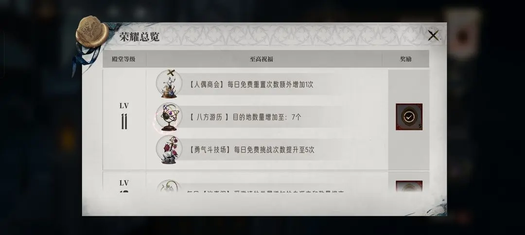 主界面古堡里面荣誉殿堂,点击荣誉总览