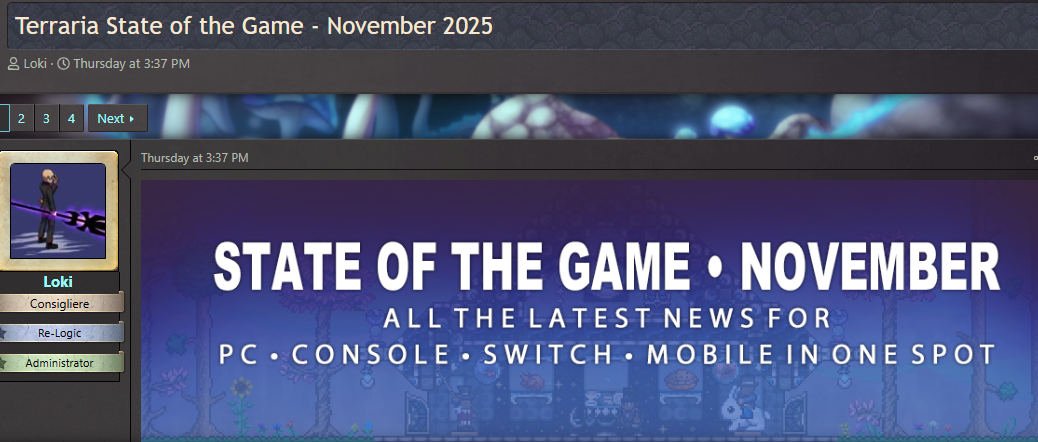 开发商Re-Logic近日发布了State of the Game游戏11月最新开发日志,其中介绍了《泰拉瑞亚》1.4.5版本的部分特色内容,并表示若开发进展顺利,该版本预计于2026年1月正式推出,还请玩家们拭目以待。