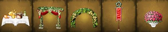 城镇装饰品:一套五张“节日套装”的设计图,用于城镇建设系统。