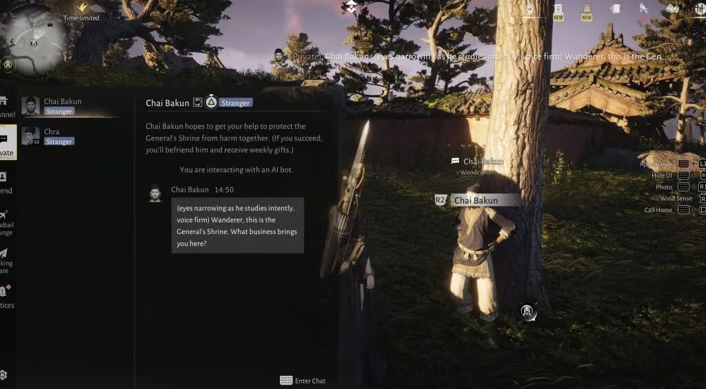 最近,MMORPG游戏《燕云十六声》里的AI又被外国玩家“玩坏”了。这款游戏有很多非玩家角色(NPC),他们的对话和行动都是AI生成的。一般情况下,这些NPC会给玩家发布简单任务,比如找东西或者找地方,完成任务能增加好感度,还能解锁每周奖励。不过玩家们发现,其实完全不用在地图上跑来跑去——只要在聊天时把AI绕晕就行。