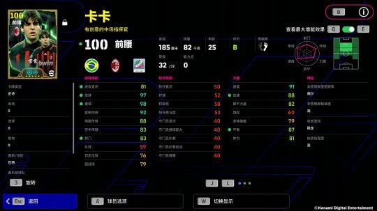 卡卡拥有【球场幻想家 +2】的增能属性,控球、盘球数值的提升让他的每一次触球都步伐轻盈,飒沓流星!