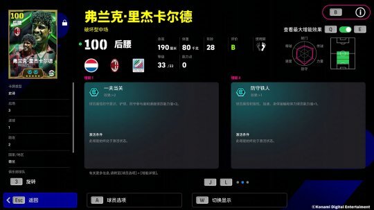 里杰卡尔德凭借【一夫当关+2】的增能属性,成为中场位置上难以突破的钢铁壁垒。而搭配【到位传球】这一特殊技能后,他在完成断球动作后,总能送出如手术刀般精准的直塞球,或是精准度极高的长传转移!