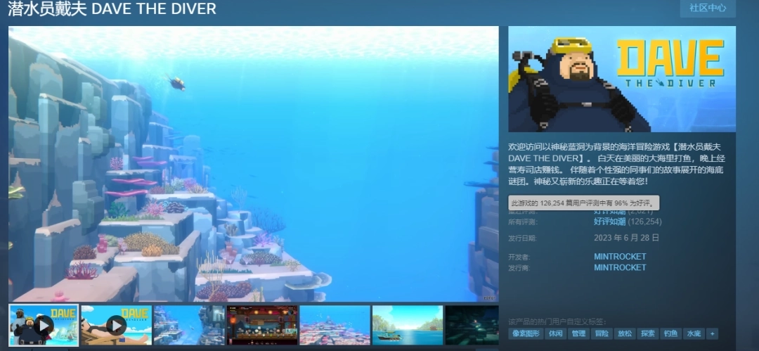 巧妙融合深海探险与模拟经营元素的独立游戏《潜水员戴夫》,凭借让人欲罢不能的玩法循环、极具吸引力的像素世界以及充满无厘头趣味的剧情,自PC版推出后在全球范围内已售出超500万份,收获了“好评如潮”的绝佳口碑,还成功斩获TGA最佳独立游戏提名与Steam「轻松惬意奖」。
