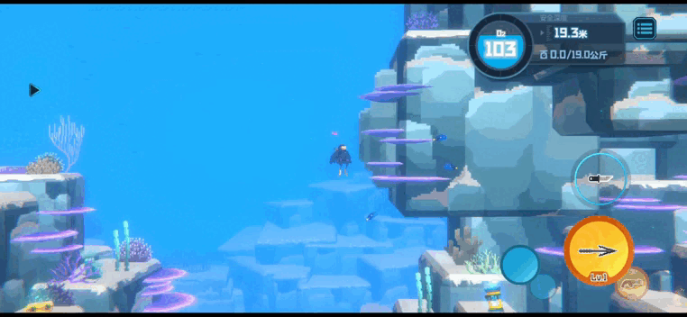 同时,手机版本特别增加了远、中、近三档视距调节功能,其中“远”视距能够带来可与PC版相媲美的开阔视野,帮助潜水员更好地把握全局情况。手机版还对鱼类生物素材的显示尺寸进行了适当放大,使得小鱼在小屏幕上也能被清晰且准确地观察到。