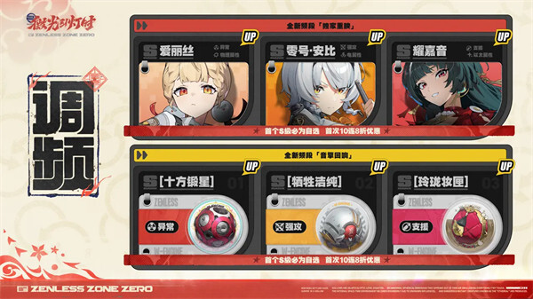 sp:下半卡池复刻阶段,首次抽取必出定向代理人,首次10连抽享8折优惠;音擎首次获取不会歪池,首次10连抽同样8折。