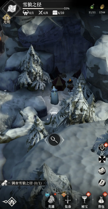 雪狼之径营地的大门处于锁闭状态,钥匙是开启营地的必需品,也是关键所在。钥匙的位置在地图右侧靠近商人的区域,那里有一个被粉色圈圈标注的土堆。获取钥匙的方法是先在商人处用金币购买铲子,再用铲子挖开这个土堆,就能得到雪狼之径的门钥匙。建议大家优先获取这把钥匙,不然可能会在进入营地前遭遇卡关情况,打乱整体节奏。关于营地战斗的攻略:首次进入营地时会立刻触发一场战斗,这时骨语女士的AOE技能能够快速清理前排怪物。圣职者要及时开启护盾并进行恢复操作,以此降低团队的损耗。到了Boss战环节,骨语女士要配合自身的被动技能,让输出达到最大化;同时要保证辅助的能量充足,在关键时刻为队友抬血或者套盾。还要尽量避免后排脆皮被Boss的技能秒杀,可以适当调整队员的站位。战后的资源获取方面:成功击败Boss后,能够获得金币、药品、装备素材等资源。完成营地战斗后,建议优先选择“营地外搜索”,因为营地周围藏有隐藏的宝箱和资源点,不要错过这些。等搜索完毕后再回到营地,这样可以循环进行操作,持续获取收益。