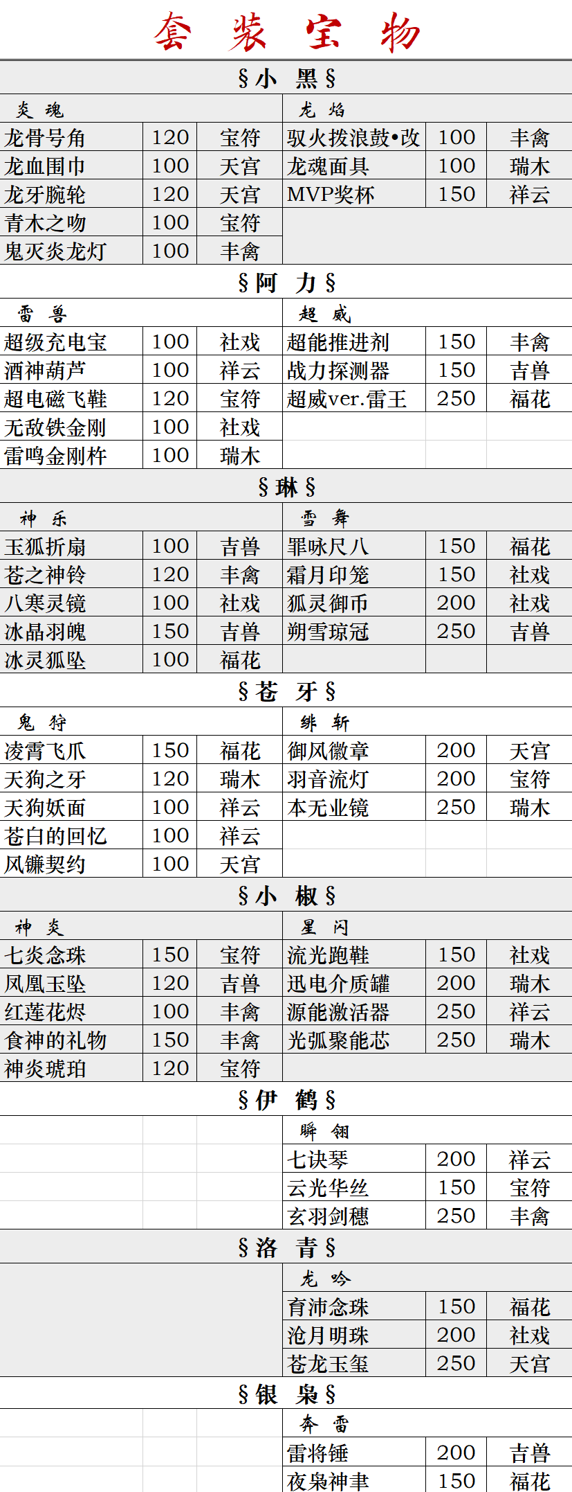 套装宝物方面,新推出的角色套装宝物(像光弧聚能芯、雷将锤这类)替代了属性卷轴原本的位置。