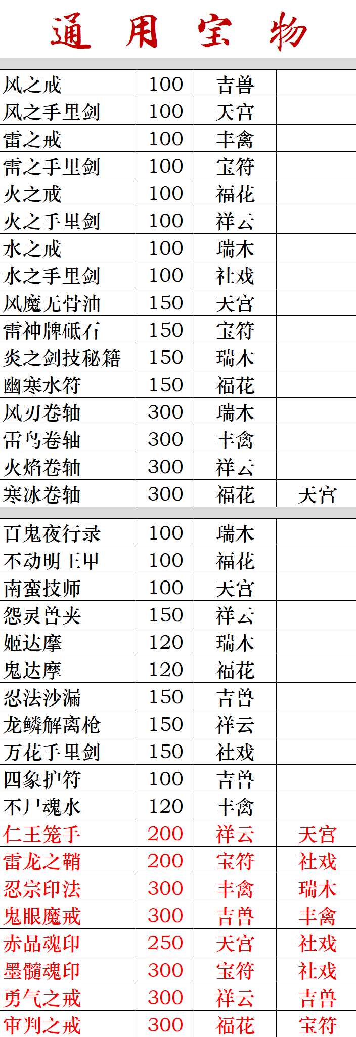 宝物的排列规则如下:首先按通用类、专属类依次排列;在同类宝物中,再依照风、雷、火、水的元素顺序排序;若元素相同,则进一步按不同角色(例如银枭、小黑等)来区分排列顺序。