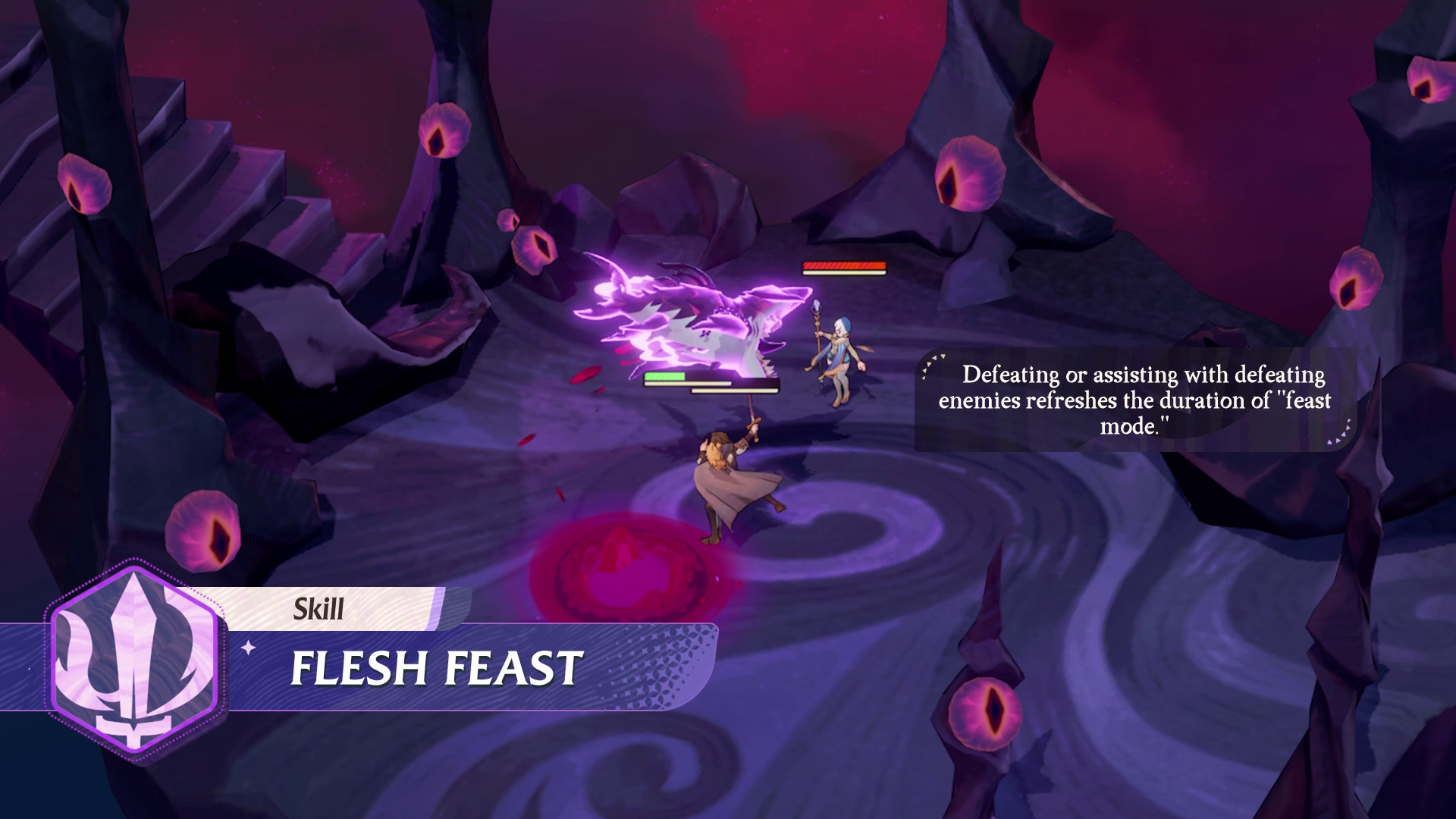 每当哈拉克施展血肉盛宴,他的行动便受直觉主导。战斗伊始,他会进入盛宴模式,短时间内暴击与急速大幅提升。一旦退出该模式,哈拉克便会失控,盲目吞噬场上最弱的非召唤单位——无论敌我,将其直接击溃。而每当他协助击倒或亲自击败一个单位,盛宴模式的持续时间就会刷新,让他在战局中更占上风。