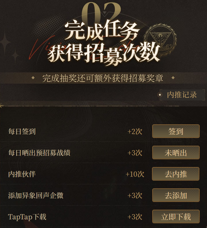 获取抽卡次数的方式为:完成关注游戏、参与预约、邀请好友等任务即可获得。