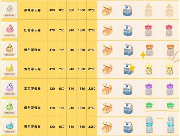 普通的糖只能赋予浮云卷基础的风味,若你想收获更多惊喜,不妨试试朵朵商人独家提供的彩糖。例如,添加紫色糖,能让你的浮云卷呈现出迷人的色泽,不仅能让人眼前一亮,或许还能在市场上卖出更高的价格。