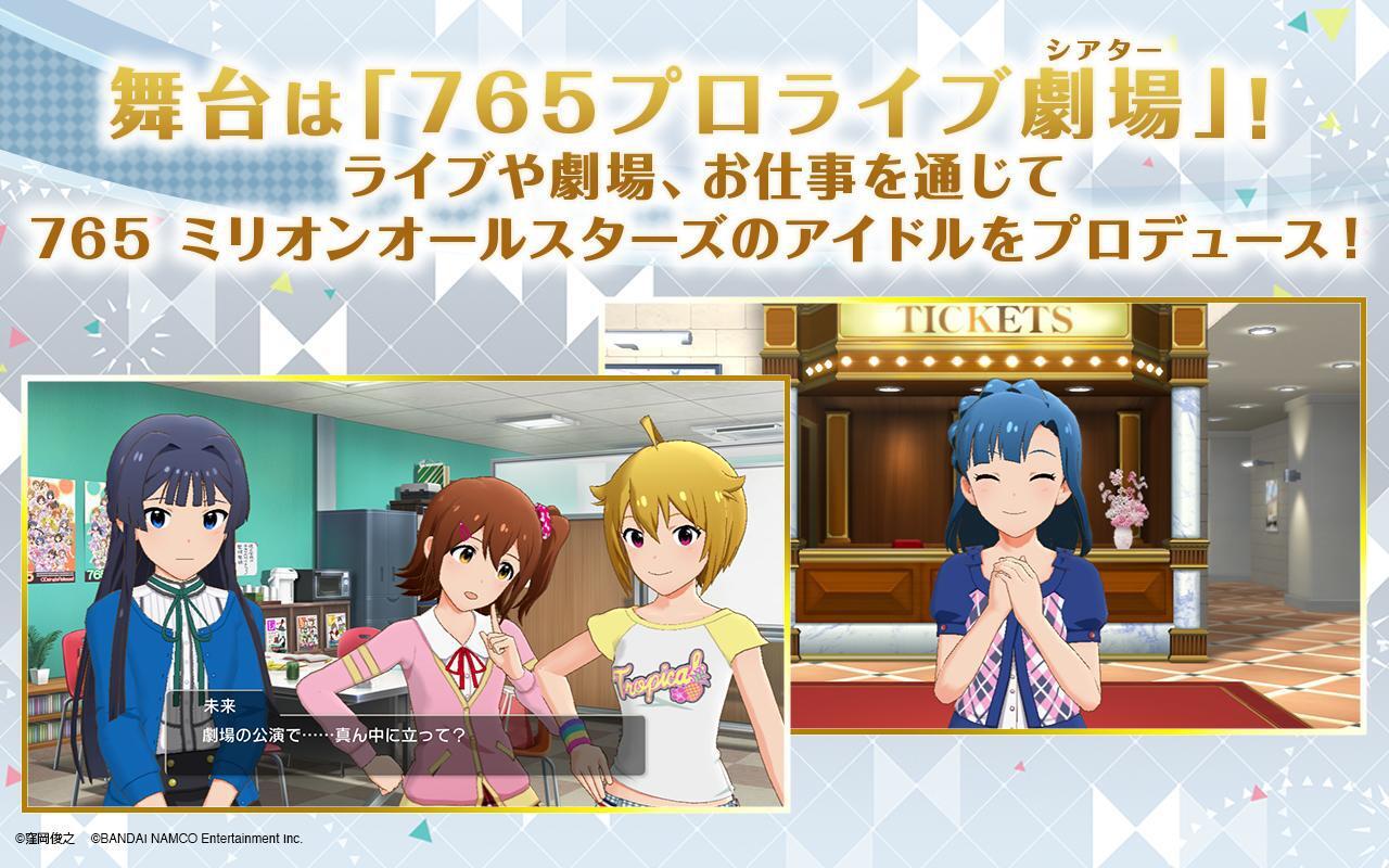 《偶像大师 百万人演唱会!剧场时光》是一款新手机游戏!游戏以765制作公司的剧场为背景,您将成为765百万明星的偶像制作人!通过在舞台上进行演出、工作和剧场交流,您可以与偶像们更加亲密地互动!