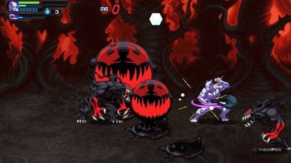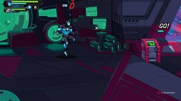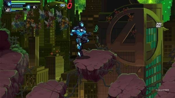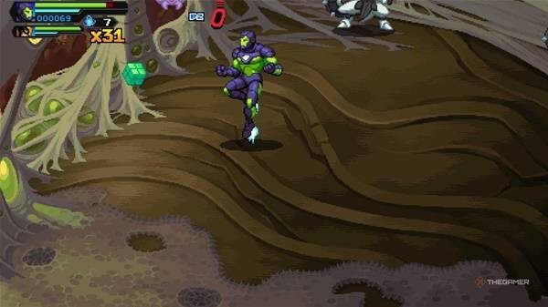 关卡的主要部分是在敌人密集的建筑内部穿行。当你登上二楼后,就能看到通往室外的桥梁以及绿色的孵化舱。在过桥之前,魔方正悬浮在一个奇特容器的上方。