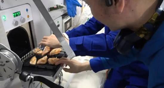 从空间站传回的视频画面中可以看到,航天员先是从包装袋里取出事先腌制好的鸡翅,接着用签架将鸡翅固定妥当,再放入热风烘烤机内加热28分钟,一盘表皮滋滋冒油、堪称“宇宙级”的奥尔良烤鸡翅便新鲜出炉了。