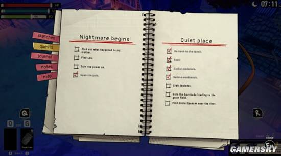 除了潜行玩法外,游戏还配备了恐怖游戏常见的资源管理系统。白天,你要尽可能深入探索荒野,收集资源来制作各类武器和补给,同时加固自己的避难所;到了晚上,面对成群结队的怪物,你也得做好“战斗”或“逃跑”的准备——毕竟不少敌人会通过声音追踪并攻击玩家。