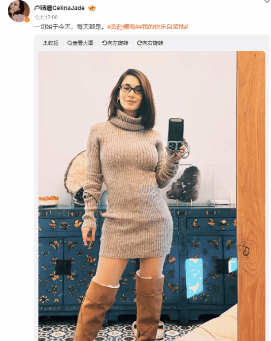 40岁女星卢靖姗产后首次在社交平台分享了自己的最新自拍。照片中,她身着燕麦色修身毛衣裙,脚踩棕色高筒靴,利落的短发造型尽显干练清爽,无论是精神状态还是身材都保持得相当出色。