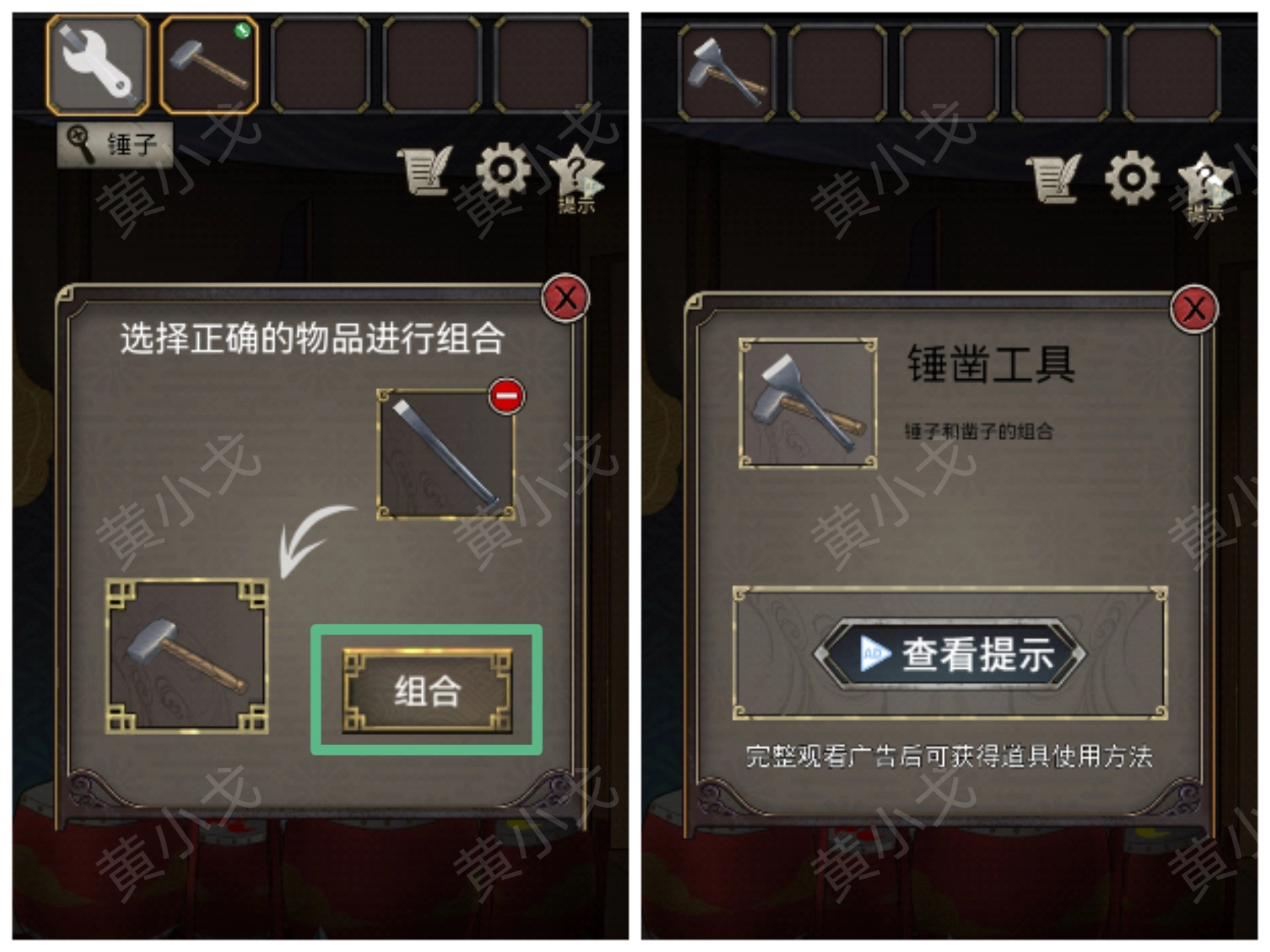 6.组合【锤子】和【凿子】,获得【锤凿工具】