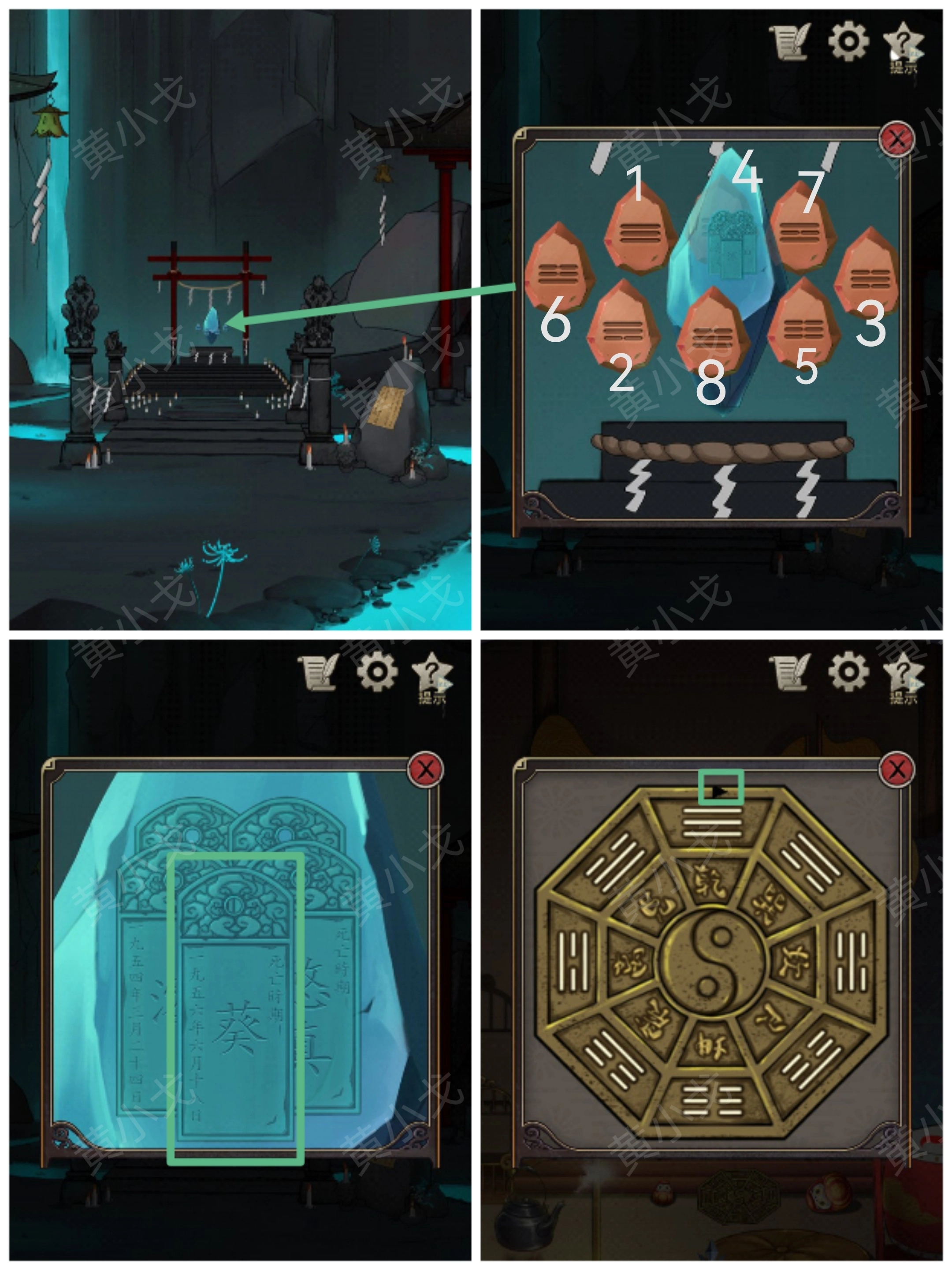 7. 在鬼市街角,点击八卦阵法,依据八卦盘呈现的线索,依照顺序点击对应八卦图案的灵石,顺序为长长长、长长短、短长短、长短短、短短短、短短长、长短长、短长长 。同时查看生死牌上小葵的生日,为1956年6月18日 。