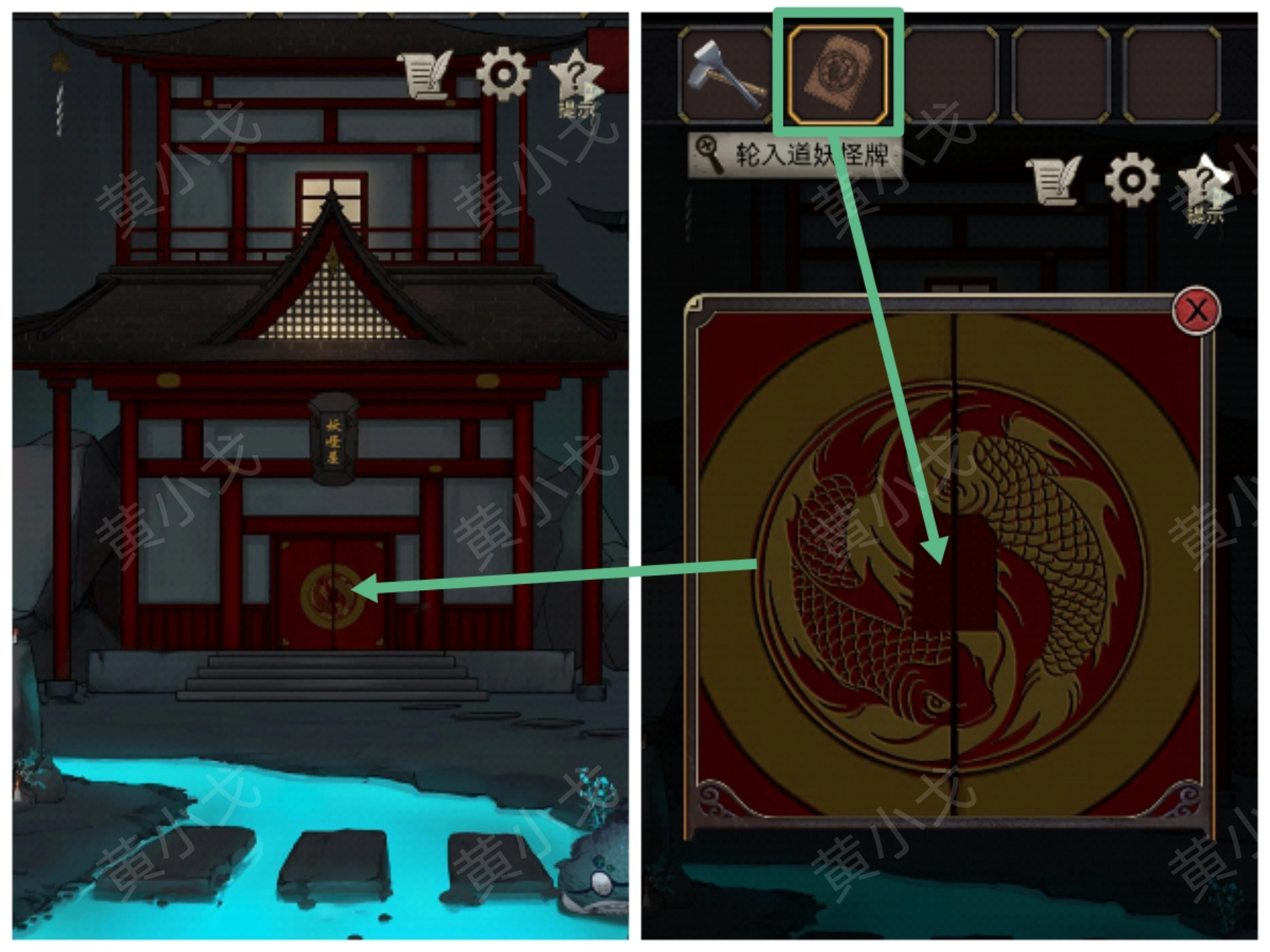 12.(鬼市街角)点击妖怪屋的门,放入【轮入道妖怪牌】;打开妖怪屋的门