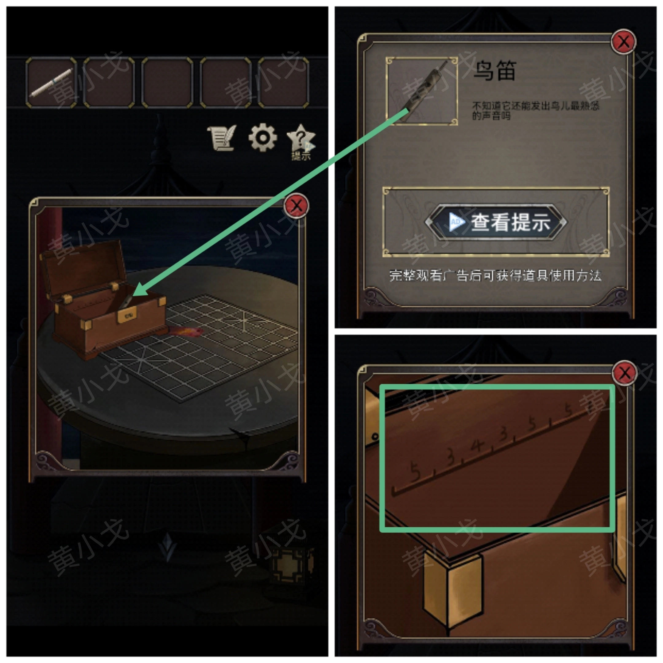 5.打开盒子,获得【鸟笛】(注意盒壁上的刻痕)