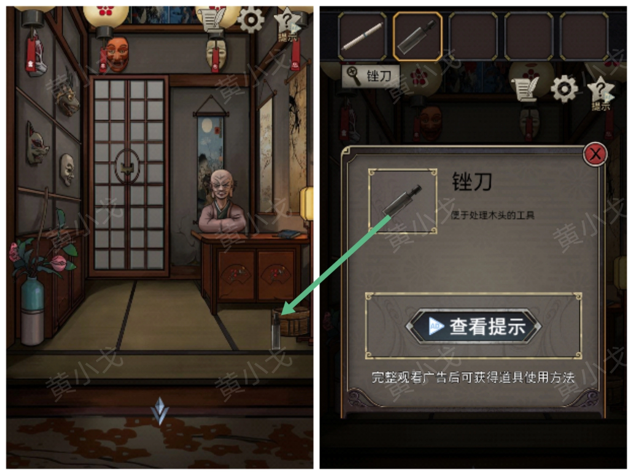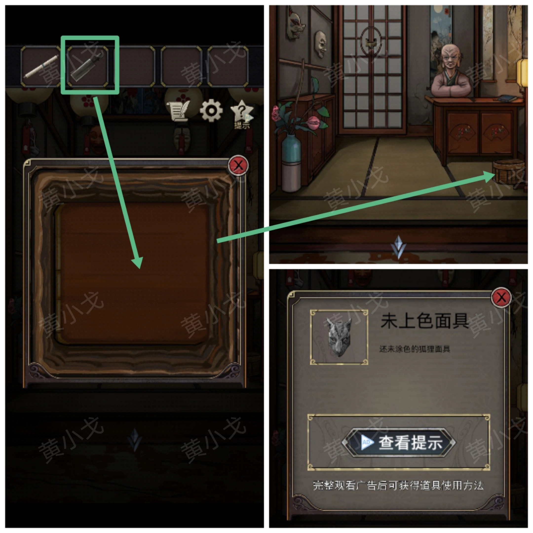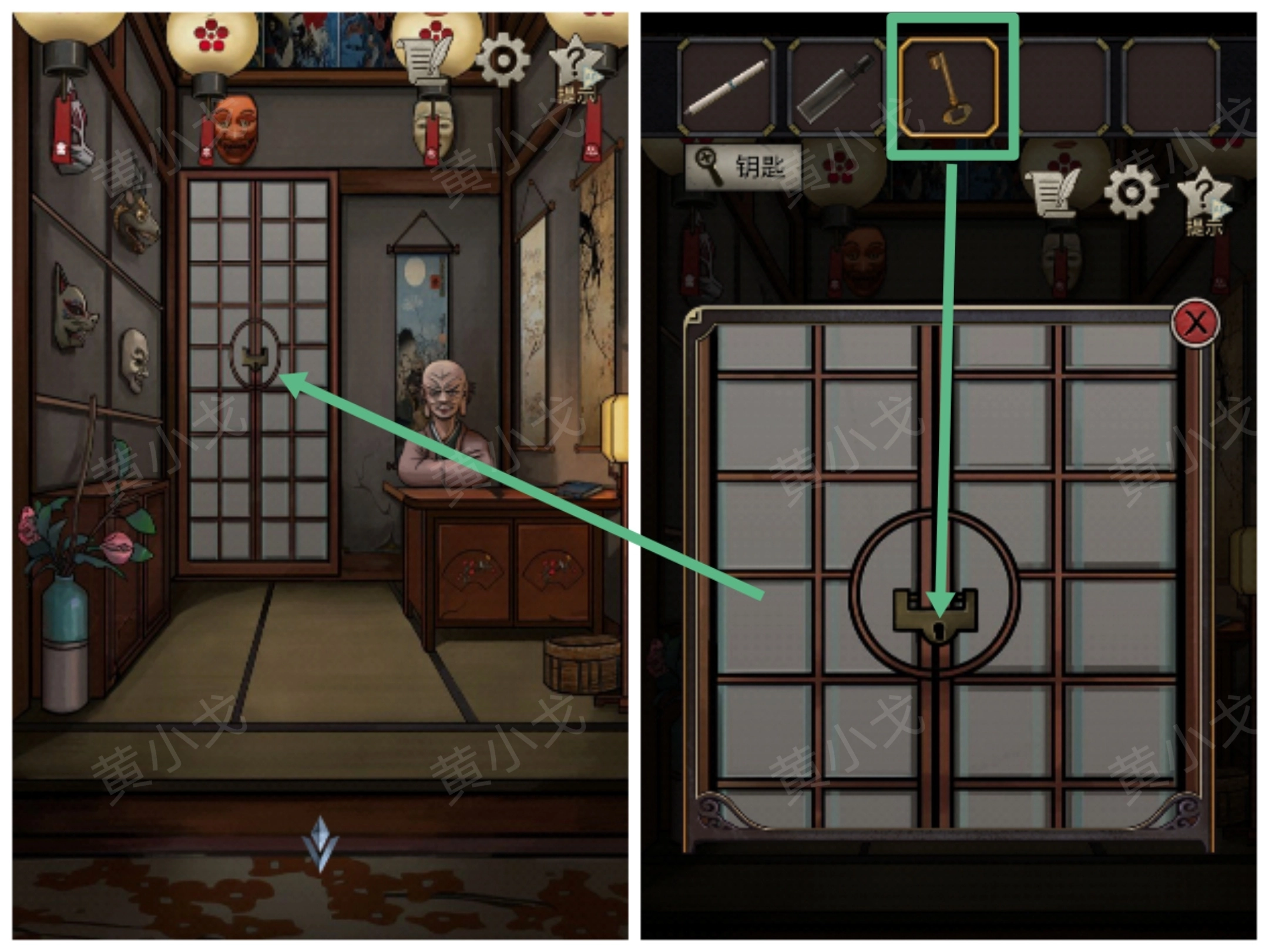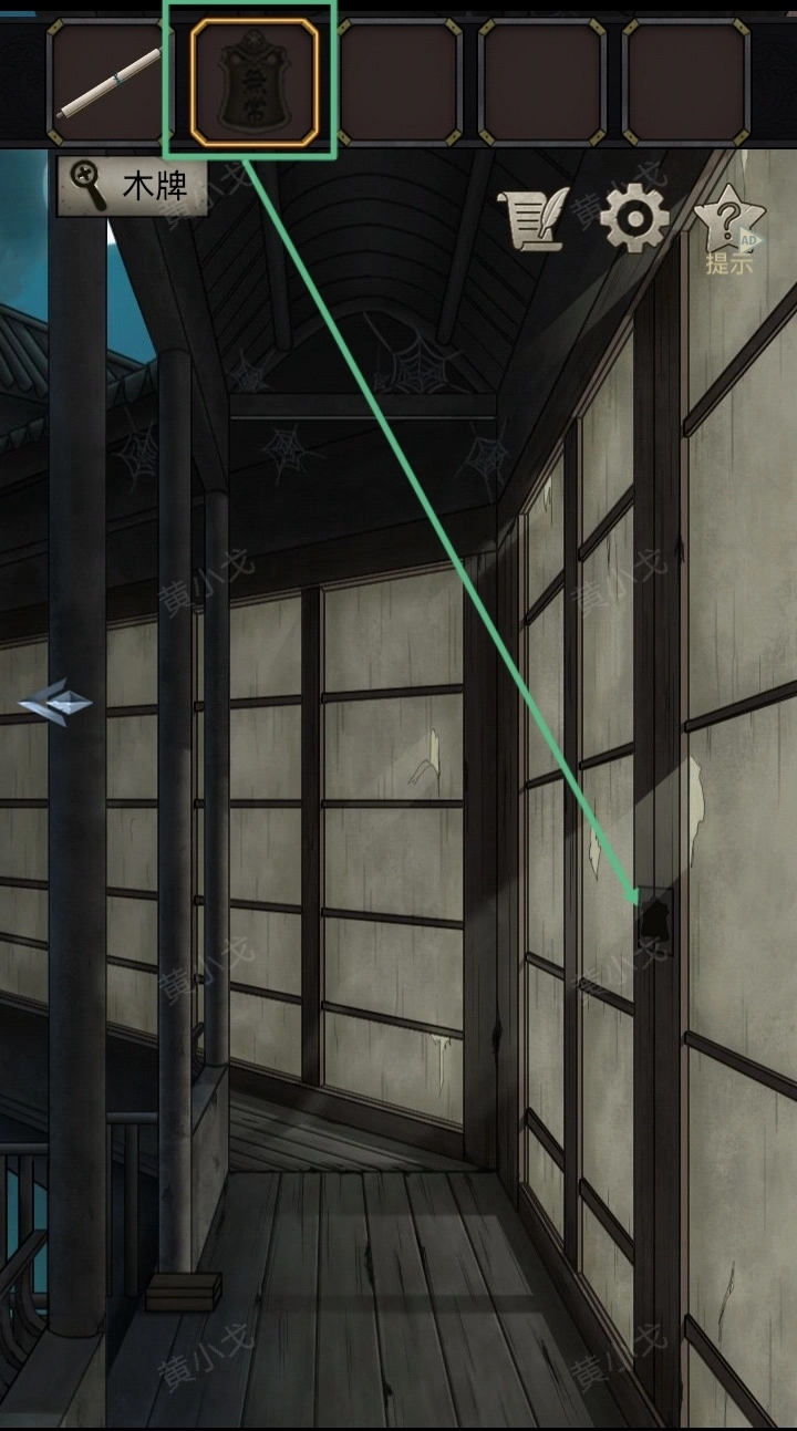 10.(游廊)把【木牌】嵌入门上的凹槽,打开门
