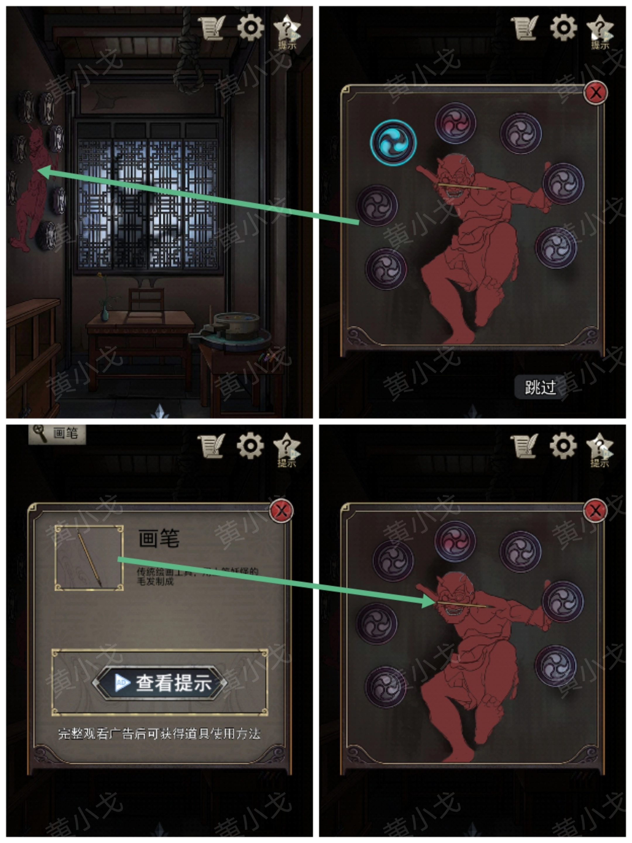 1.(游廊)点击地上的盒子,完成一笔连线小游戏