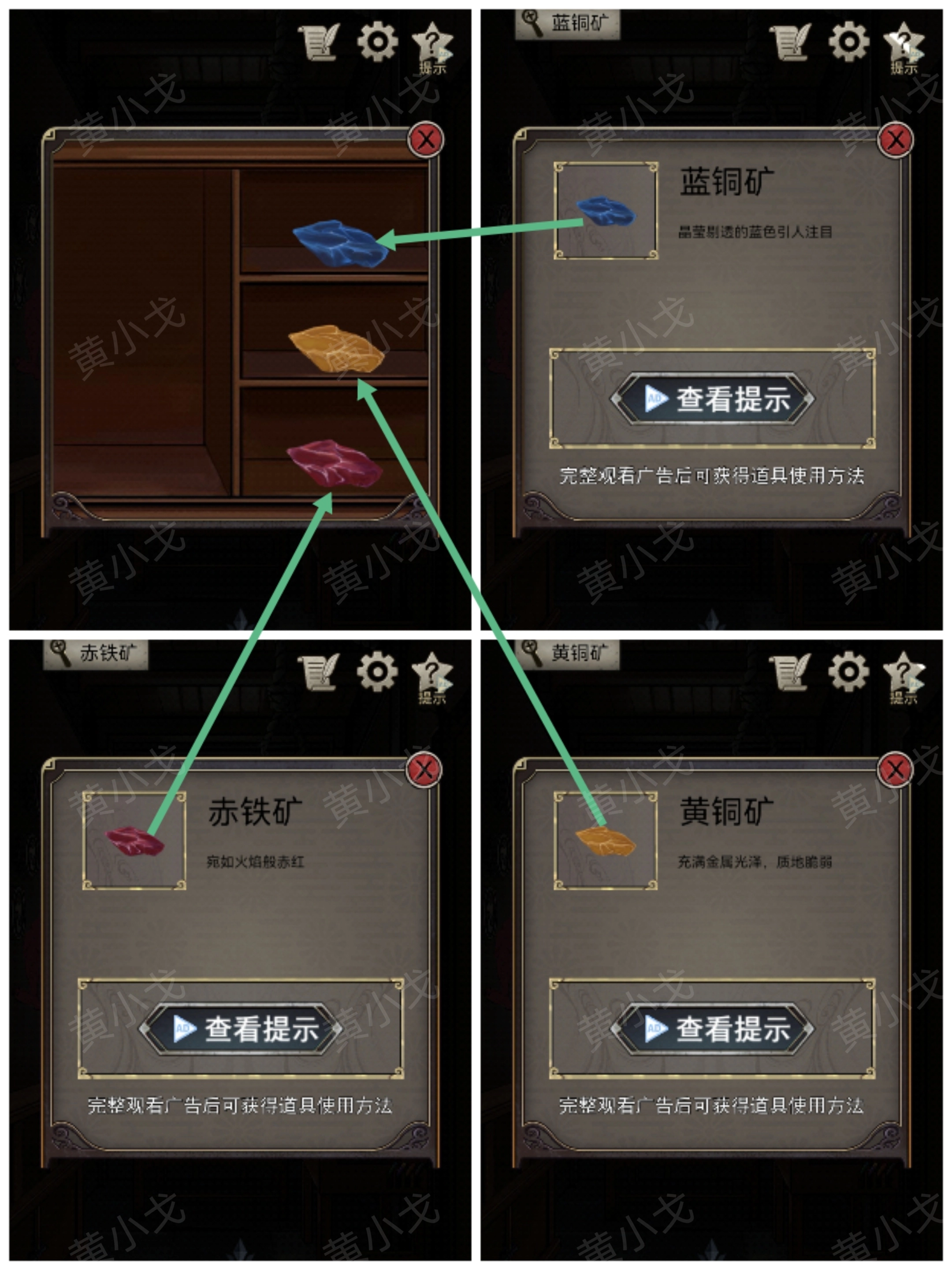 20.打开柜子,获得【蓝铜矿】、【黄铜矿】和【赤铜矿】