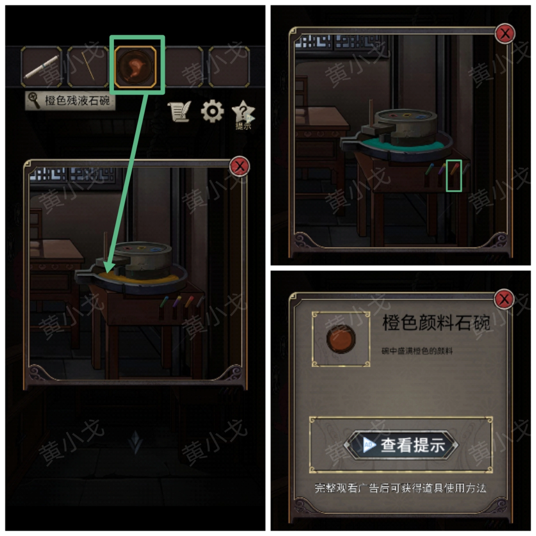 23.拉动橙色摇杆(第三个),用【橙色残液石碗】装取颜料,获得【橙色颜料石碗】