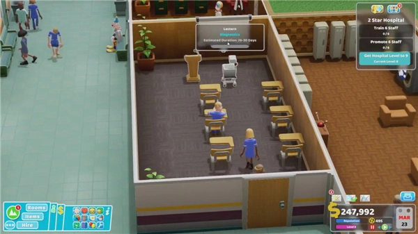 踏入《双点医院》的游戏世界,恰似邂逅一位魅力十足又风趣幽默的伙伴,更让人惊喜的是,对方还拥有过人的智慧。清新明快的艺术风格搭配荒诞搞笑的虚构病症——比如患者会把自己当成Freddie Mercury,或是直接化身小丑——这些设计巧妙地衬托出游戏在深度策略与问题解决层面的独特魅力。