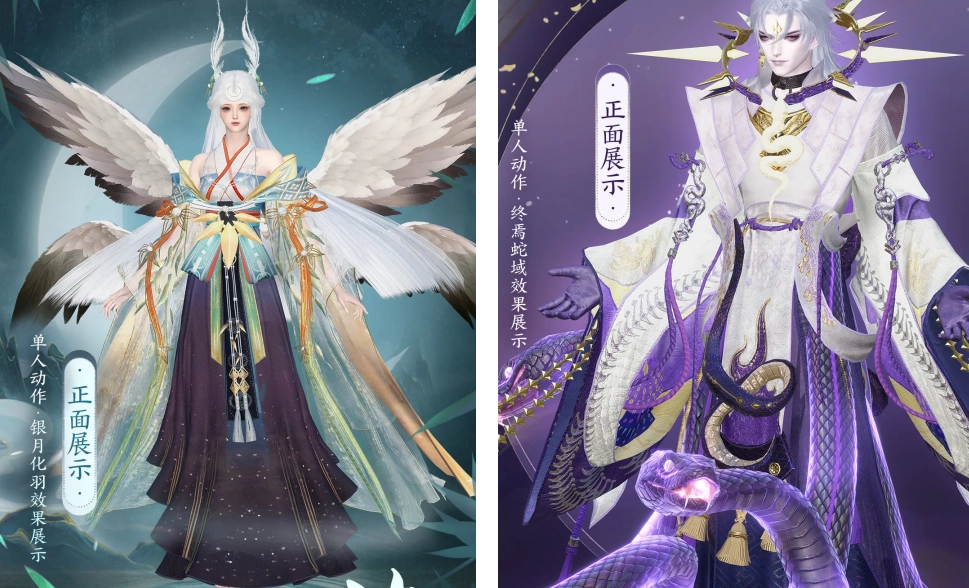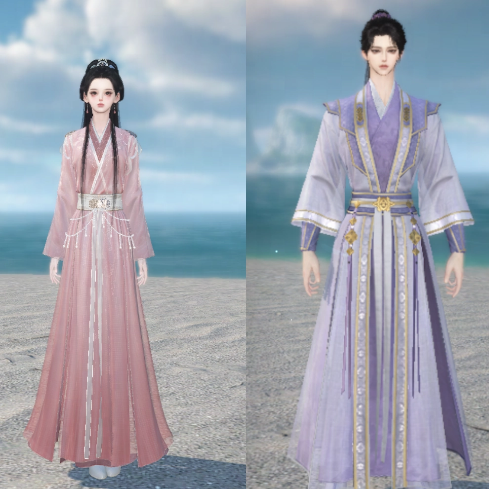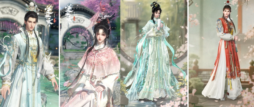 【潇湘黛影/怡红顽玉】:这是林黛玉与贾宝玉的联动时装,直购价格为2880纹玉。玩家在获取该时装后,能够一并得到一阶段时装、二阶段时装、单双人动作以及群龙之首。另外,白发【绛珠】和【神瑛】可通过消耗一颗天赏石进行兑换。