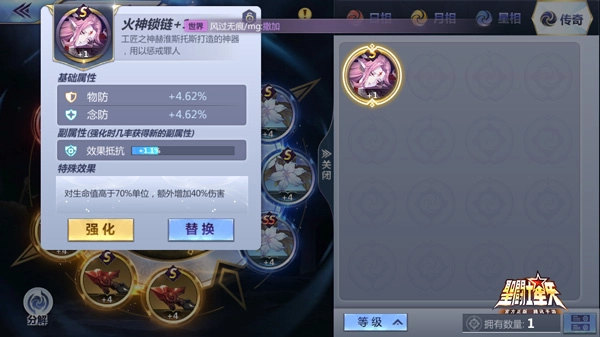 2、“精神粉碎”对“银河星爆”的攻击伤害有进一步提升作用,原始状态下其提供的穿透效果仅为概率触发,不过只要将撒加的“善恶一体”完成觉醒,就能使“精神粉碎”在特定条件下转变为必定触发的状态。
