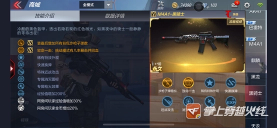 NO4:M4A1-黑龙:扫射最强的M4,且脚步声范围降低,所以相对来说,黑龙更适合团队和爆破战,这点要优于黑骑士和死神