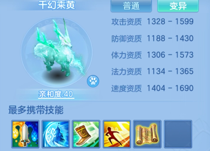 千幻最实用的打书思路主要有两种,一是敏剑气搭配,二是敏特殊配置。偏好单挑玩法的话,敏特殊是更合适的选择;若常参与群体战斗,敏剑气则更为适配。千幻的速度资质上限可达1710,再加上1610的攻击资质,使其成为飞升阶段的强势宠物。特殊打书方向下,它会是具备感知、审判技能的克制型宠物,至于是否携带高敏捷技能,需根据玩家自身的加点策略来决定。