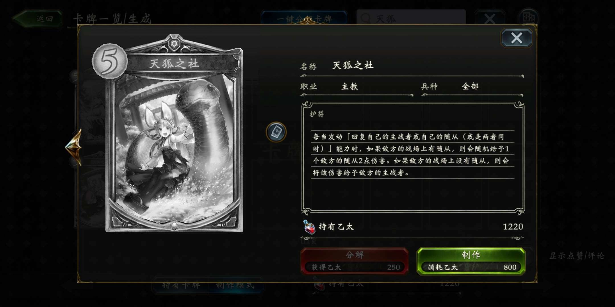 天狐之社是奶炮教至关重要的一张牌,原因在于它是永久护符,只要此牌处于场上,就能为主战者带来“每当回复生命值时,对敌方随从或主战者造成伤害”的效果。