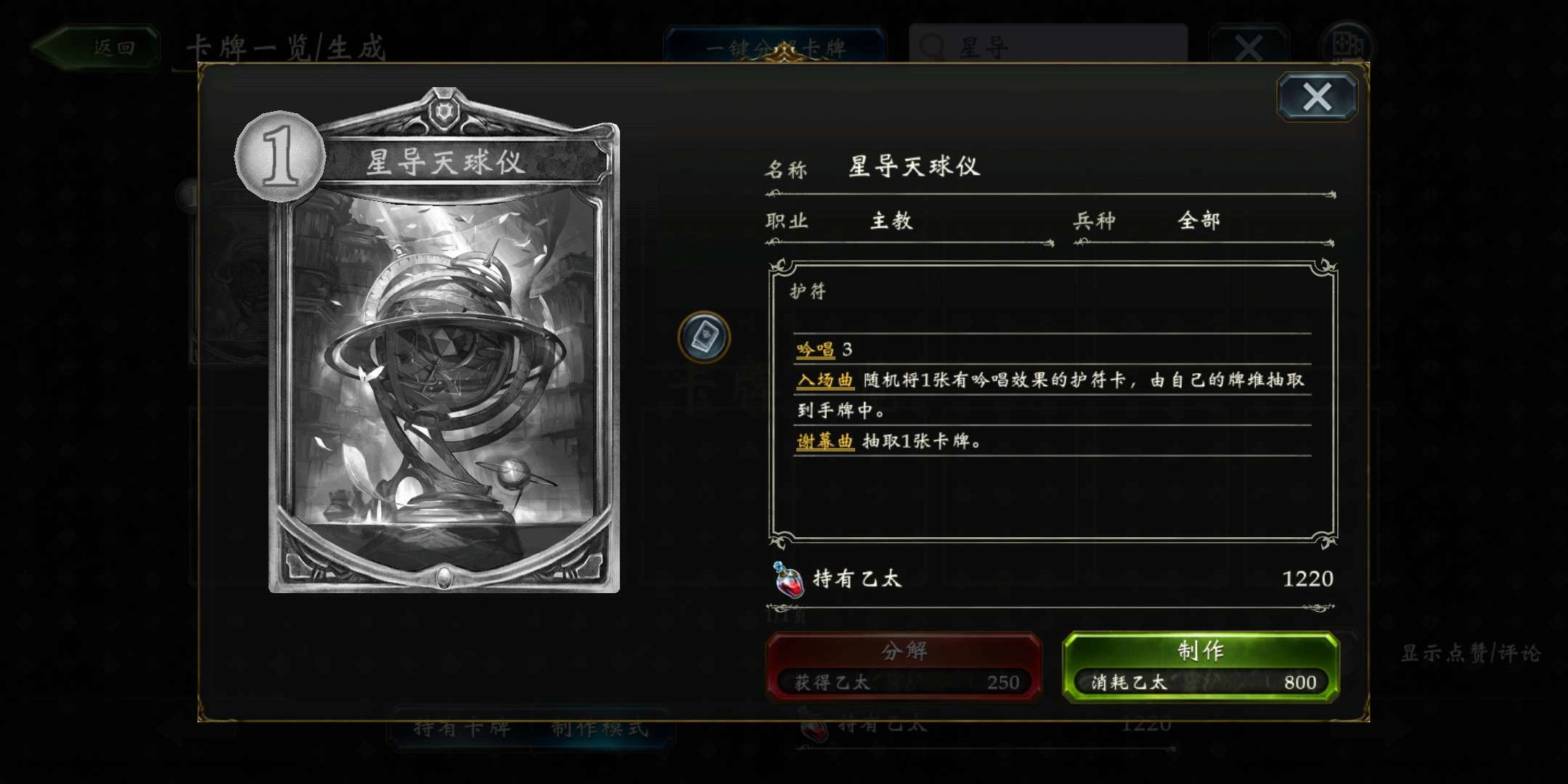 星导天球仪是一张检索卡牌,专门用于检索带有吟唱效果的护符。借助这张卡,玩家能在游戏前期快速找到心仪的吟唱护符牌;而且当它离场时,玩家还能额外抽一张牌,堪称一张实用性十足的一费卡。