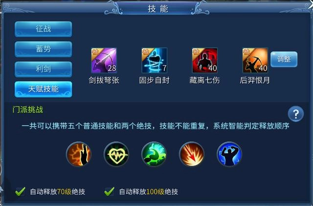 自动打门派技能与天赋搭配