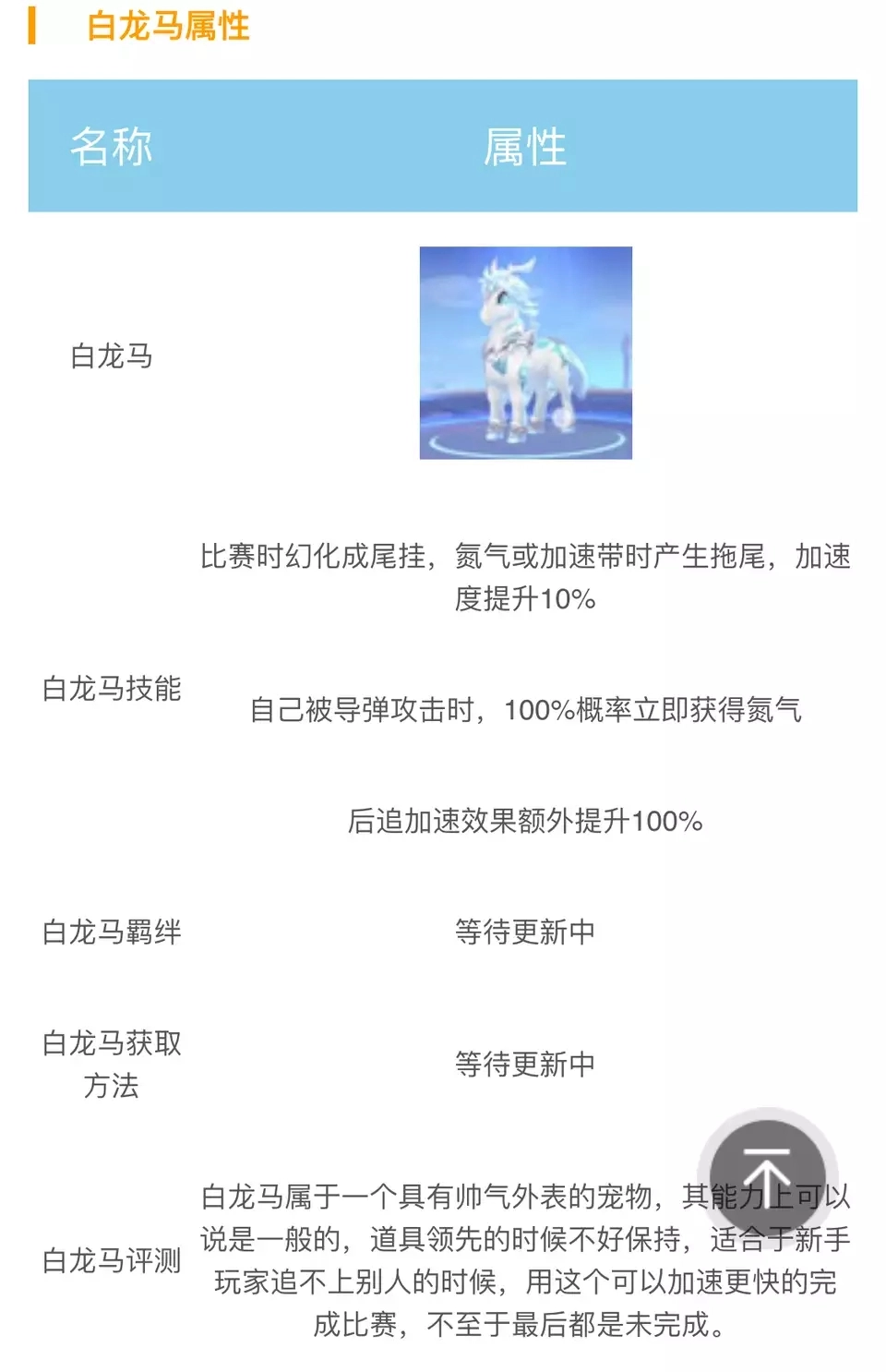 第二个宠物是白龙马,它和梦奇类似,在氮气加速时也会呈现出漂亮的尾挂效果。