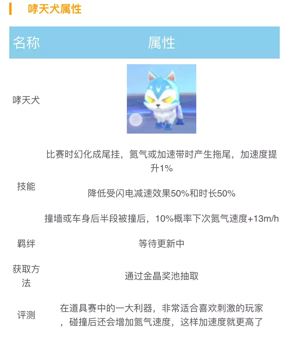 第一个宠物是梦奇,它的主要特点在于氮气加速时能带来漂亮的尾挂效果。