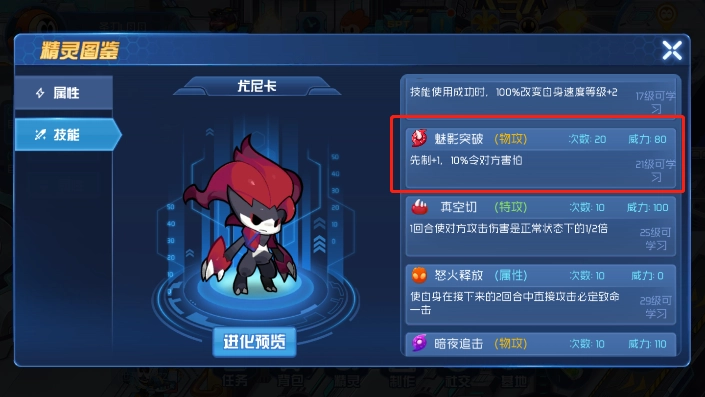 1、魅影突破:至少是需要一个先制技能的,因此魅影突破是必不可少的。