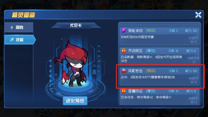 (4)总结:尤尼卡的攻击种族值直接达到了满值,加点方向也全部偏向速度与攻击。只要能确保率先出手,大体上就能进入收割的节奏,所以像魅影突破这类先制技能就会显得格外实用。整体而言,尤尼卡属于T1级别的精灵,花费资源培养它绝对是稳赚不赔的。