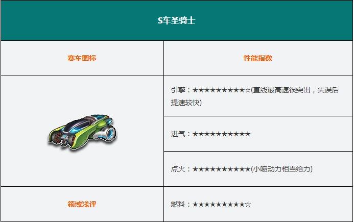 圣骑士是游戏里首款S级道具车,外观精致,抓地性能出色,操控手感舒适;速度不算顶尖,集气能力中等,尾部设计也不够亮眼。尽管它属于S车中的低端型号,但性能依然碾压A车。最后希望各位玩家都能获取心仪的车辆在赛道上竞技,也祝愿大家能如愿用上最顺手的座驾——游戏会持续推出新车,但最美的永远是自己心中的那一辆。