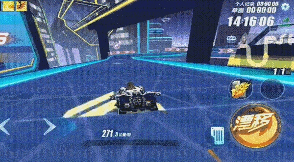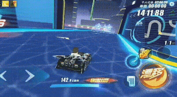 通过星型装置后会进入一段光滑路面,在这段路上漂移不会导致速度下降。建议在进入该路段前,先通过漂移适当降低车速,再借助快速出弯来调整车头角度,从而顺利通过此路段。