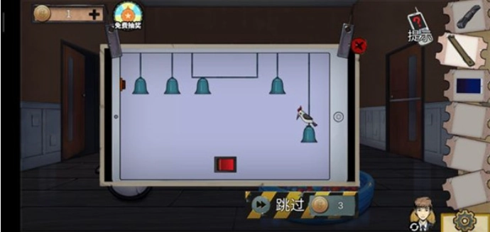 门后还藏着谜题等着我们去。其中一道是算术题,正确答案是12.25,计算时遵循先乘除后加减的规则,只要足够细心就能算对。此外还有一个小游戏,需要等待中间的铃铛——当鸟儿飞到中间铃铛的位置时,按下中间的红色按钮,然后迅速移向另一边。