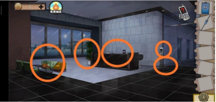 我拿到了一幅图画,上面的数字正好对应1楼的电话号码,得按照箭头的起点来输入密码才能进入下一个环节。接下来要从这幅图里密码,根据图中的关联提示,把白色圆点放到没有叉号的位置就行。拿到钥匙后,移动一下花瓶,就能找到卡片,然后把卡片拿到涂鸦的地方摆放字母,具体操作就像下面这张图显示的那样。