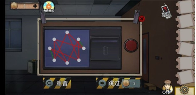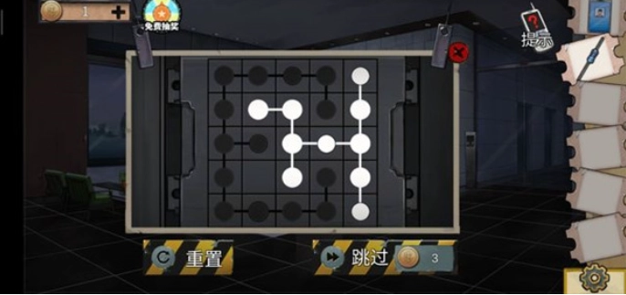 打开后还是一个游戏,我们按照提示点亮平板,点亮四次后就能获得润滑油,门也会自动开启,要是操作错了可以重置,找不到提示的朋友可以点击提示按钮。完成这一步后,就进入下一轮搜查环节:把小刀交给女性角色,石膏苹果交给男性角色,这样就能拿到卡片,用卡片刷门后去留声机的密码——密码藏在房间的画上,记住顺序依次按下就行。完成这些后会得到滑轮,将它和绳子组合起来。