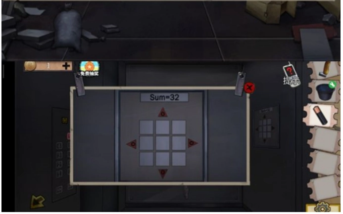 进入电梯后,我们先前往9楼,收集所需的东西和物品,接着返回1楼获取电池,之后再去9楼。可以推测出密码组,上下左右的方向指令对应着我们需要移动的步数。